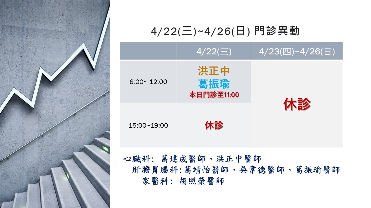 【門診異動公告】4/22(三)~4/26(日)門診異動
